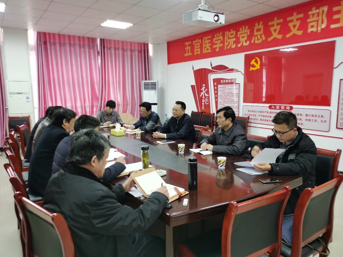 会议伊始,钟儒刚副校长发表重要讲话,对开好民主生活会提出了明确要求。五官医学院党支部书记范杉主持会议,他首先通报了民主生活会准备情况,通报了2019年度民主生活会整改落实情况,并就开好生活会提出要求;并代表学院班子作对照检查。随后,各位班子成员紧扣民主生活会主题,重点对照六个方面,联系自身思想工作生活及作风实际,逐一对照检查并开展批评与自我批评。