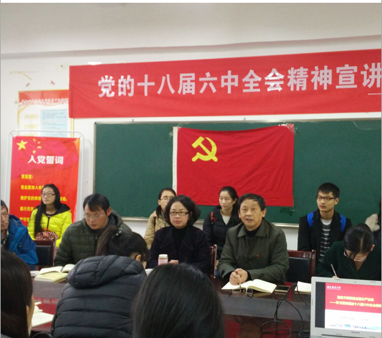 本网讯(通讯员涂芳)12月15日下午,五官医学院党总支组织召开了党的十八届六中全会精神宣讲报告会,特邀马克思主义学院副院长刘侣萍同志作了专题辅导报告。五官医学院全体党员及学生入党积极分子代表参加,党总支书记范杉同志主持了报告会。