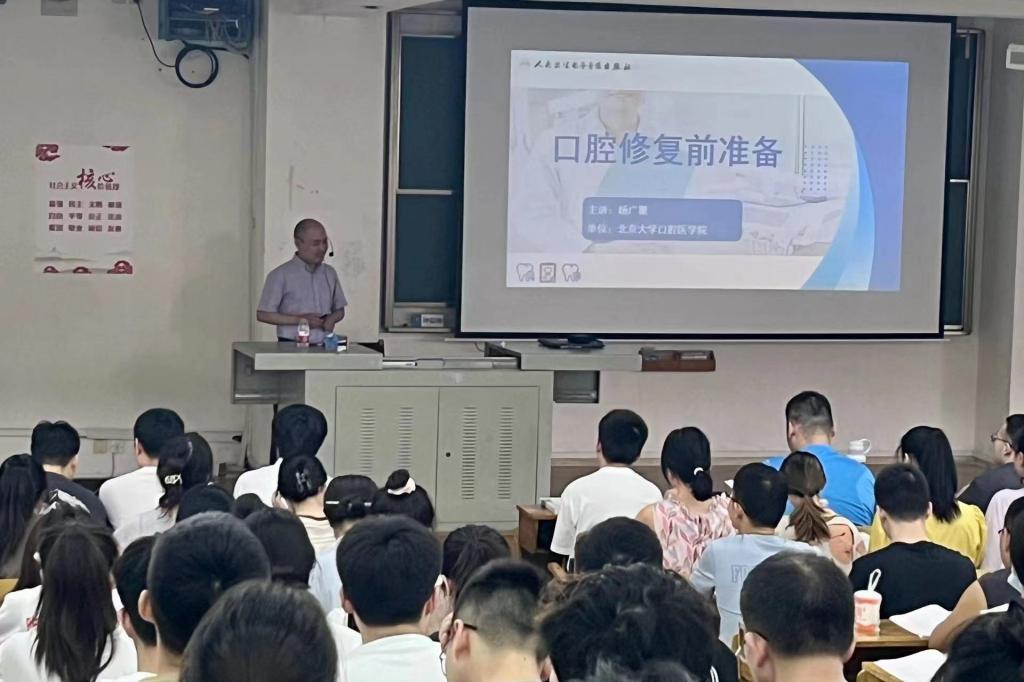 (通讯员 林培杰) 北京大学口腔医学院杨广聚教授应中华口腔医学会邀请来我校ok138cn太阳集团进行教学帮扶活动,6月14号上午,为2021级口腔医学本科班学生讲授了一堂生动的理论课,主要内容是修复前口腔的一般处理。