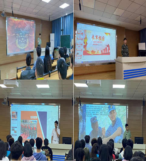 之后,四位退伍复学的同学吴楚锋、房超群、左富成、陈金钊依次分享了自己的军旅经历和感想,参军不仅能够提升自我,更是能在军队中收获战友间真挚而宝贵的情感。鼓励同学们积极响应国家号召,不辜负习总书记的期望和嘱托,把热血挥洒在实现强军梦的伟大实践之中,书写绚烂、无悔的青春篇章。