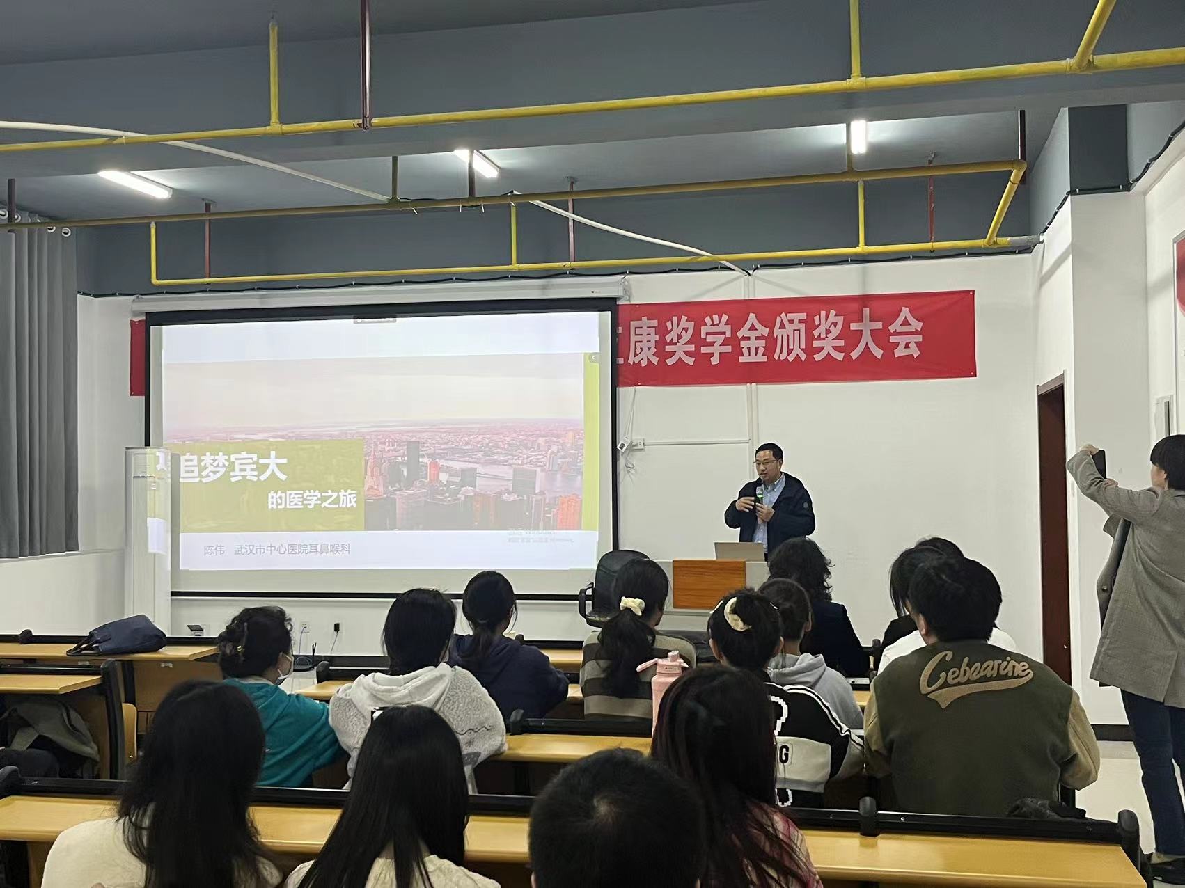 陈伟以“追梦宾大的医学之路”为题,向同学们展示了一名普通医学生的求学、科研、就业的进取之路,为同学们理清了一条前行的路,激励着学生们潜沉钻研,刻苦求学。