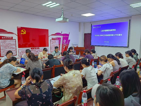 会上,周燕红院长充分肯定了学院上半年取得的突破性成绩:口腔医学与眼视光医学专业在2025年专业建设评估中双双荣获A级评价;民生中山口腔学院理事会顺利召开,校企合作迈入新阶段;学生学科竞赛成果丰硕,在各大赛事中屡创佳绩;口腔实验室完成整体搬迁,办学条件显著改善;眼视光技能竞赛取得历史性突破;科普教育基地建设持续深化,社会服务效能不断提升。她同时指出,面对高质量发展考核目标,下半年仍需攻坚克难、重点突破。她要求:一是全员备战临床医学专业认证,要求各部门以最高标准配合专家入校指导工作;二是高质量完成"三定一聘"岗位说明书编制,各单位需按岗位职称科学制定职责规范;三是筑牢暑期安全底线,严格落实防火防盗、实验室生物安全及学生动态管理,持续推动就业工作。