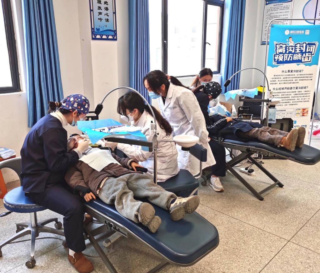 清晨八点,OK138太阳集团五官学院与口腔医院的医护人员便携带专业设备抵达泉都学校。在精心布置的临时诊室内,孩子们有序排队接受口腔检查。周燕红教授亲自带领团队,为适龄学生进行细致的窝沟封闭治疗。