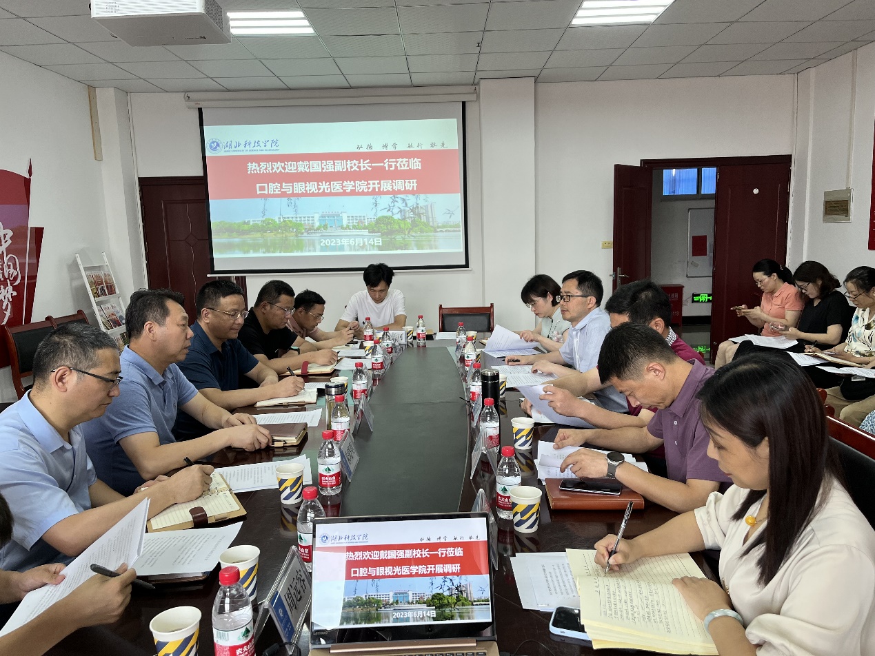 6月14日上午,校党委常委、副校长戴国强一行到ok138cn太阳集团开展主题教育调研——科技工作专题座谈会,为学院高质量发展问诊把脉。科学技术发展院副院长、综合处处长朱晓明、科学技术发展院副院长、自然科学处处长吴昭君、社会合作与太阳集团处副处长钟良骥陪同,ok138cn太阳集团全体班子成员、各党支部书记和教师代表参加会议。